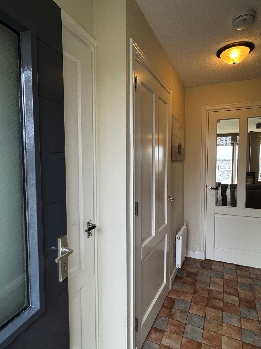 Vanuit de woonkamer heeft u een werkelijk schitterend uitzicht over het vaarwater, hier varen de hele dag sloepjes voorbij. De openslaande deuren leiden naar het onderheide terras, pal op het zuiden. Op de begane grond bevinden zich verder de badkamer met inloop douche, een wastafelmeubel en een apart gastentoilet.